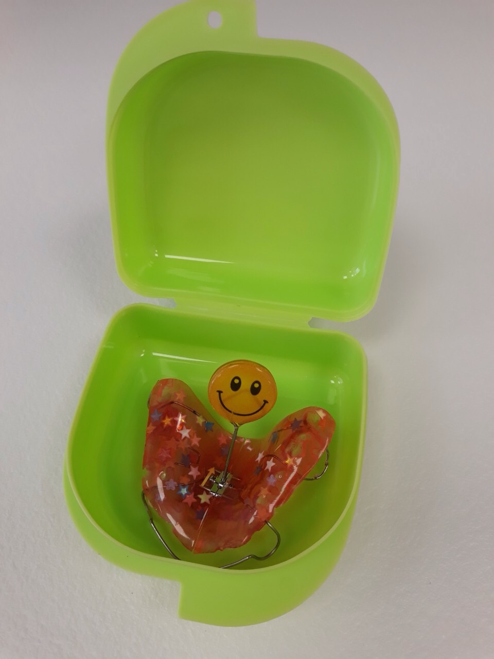 -Постоянный контроль родителей за тем, как ребёнок закрепляет изделие на зубы. От правильного крепежа будет зависеть эффективность представленного метода выравнивания зубного ряда и исправления прикуса.